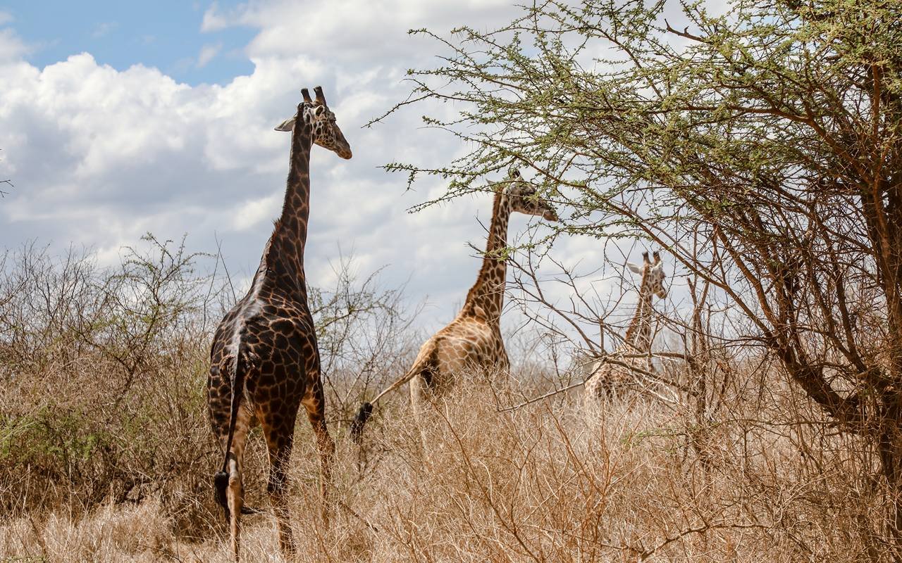 Odbiór z hotelu przez naszego przewodnika, który krótko przedstawi szczegóły safari, potem transport do miejsca zakwaterowania na obiad w parku narodowym Tsavo East, gdzie będzie czas na relaks. Po południu, czas na przejażdżkę, podczas której zobaczysz dzikie zwierzęta w swoim środowisku takie jak: słonie, zebry, dikdiki (rodzaj małych antylop), oryksy, bardzo nieśmiałe i nieuchwytne kudu, guźce, żyrafy, bawoły, no i oczywiście nie zapomnijmy o naszych kochanych złośliwych małpach. Oczywiście po wszystkim kolacja i nocleg w hotelu Voi Safari Lodge.
